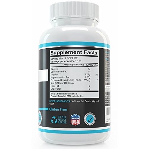 MAX STRENGTH Delivers 1250mg of fat burning belly busting diet CLA per one pill serving, increased metabolic rate, aids lean mass ratio, keep away from low potency smaller count alternatives… See and Feel the Difference