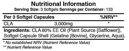 Each and every softgel comprises 1,000mg of CLA (Conjugated Linoleic Acid) 80% EE Oil