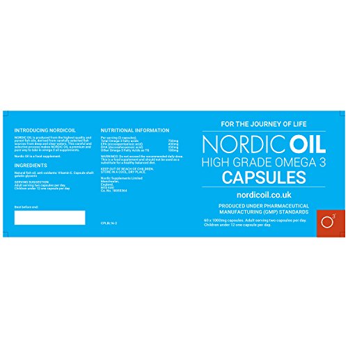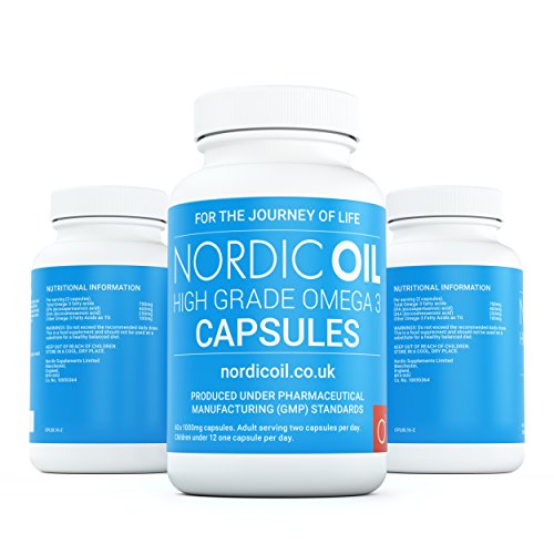Nordic Oil High Strength Pharmaceutical Grade Omega 3 Fish Oil 1000mg Capsules. 3rd Party tested. Used by Professional Athletes and Advisable by Health Care Professionals. Protected for Pregnant Women and Children. Molecularly Filtered for the Easiest Levels of Purity with Very High EPA and DHA Levels.