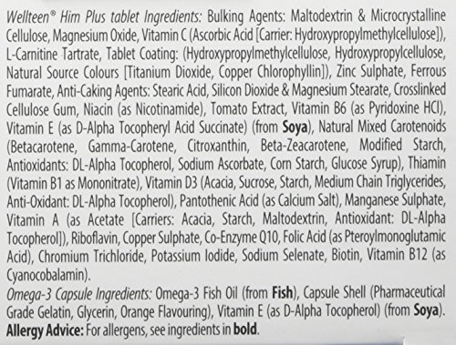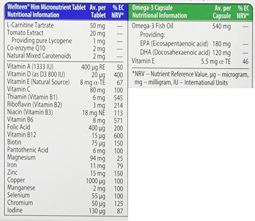 Even greater nutritional beef up for teenagers and young men Wellteen Him Plus contains the original Wellteen Him tablet formula, with a high purity Omega-3 capsule, in a convenient 2-in-1 pack. Micronutrient tablets With vitamins and minerals to help deal with vitality and wellness including vitamins B6, B12 and C which contribute to the reduction of tiredness and fatigue. Vitamin D and zinc which contribute to the normal function of the immune system. Iron, iodine and zinc which contribute to normal cognitive function High concentration Omega-3 fish oil providing DHA (Docosahexaenoic acid) which contributes to the maintenance of normal brain function and vision*. Produced to the highest standards of quality keep an eye on, the use of advanced molecular distillation for added purity. *A a good option effect is obtained with a day-to-day intake of 250mg of DHA To use: Take one tablet and one capsule per day with your main meal. Swallow with water or a cold drink. Not to be chewed. Do not exceed the really useful intake. Not to be taken on an empty stomach. There is not any want to take an additional multivitamin. Ingredients: Bulking Agents: Maltodextrin & Microcrystalline Cellulose, Magnesium Oxide, Vitamin C (Ascorbic Acid [Carrier: Hydroxypropylmethylcellulose]), L-Carnitine Tartrate, Tablet Coating: (Hydroxypropylmethylcellulose, Hydroxypropylcellulose, Natural Source Colours [Titanium Dioxide, Copper Chlorophyllin]), Zinc Sulphate, Ferrous Fumarate, Anti-Caking Agents: Stearic Acid, Silicon Dioxide & Magnesium Stearate, Crosslinked Cellulose Gum, Niacin (as Nicotinamide), Tomato Extract, Vitamin B6 (as Pyridoxine HCl), Vitamin E (as D-Alpha Tocopheryl Acid Succinate) (from Soya), Natural Mixed Carotenoids (Betacarotene, Gamma-Carotene, Citroxanthin, Beta-Zeacarotene, Modified Starch, Antioxidants: DL-Alpha Tocopherol, Sodium Ascorbate, Corn Starch, Glucose Syrup), Thiamine (Vitamin B1 as Mononitrate), Vitamin D3 (Acacia, Sucrose, Starch, Medium Chain Triglycerides, An